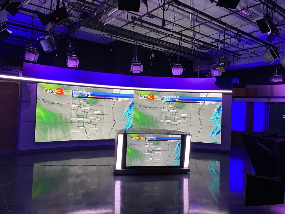 Most of the set’s areas are designed to be used in multiple ways, whether it be for weather reports, anchor desk shots, standups or interview segments using the studio’s movable sofa setup.